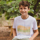 Camiseta de manga corta en color blanco. Confeccionada con algodón 100% orgánico. Estampado en color azul, referido a una cola de ballena, con el texto "Nature is Home" Cuenta con sello GOTS, OEKO-TEX y FAIR WEAR. Composición:100% algodón orgánico.